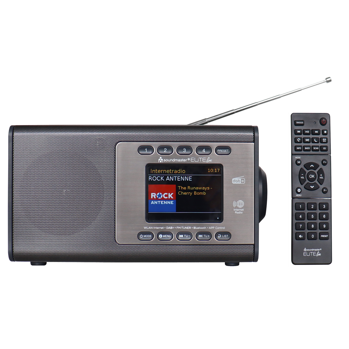 De Soundmaster IR7000TI radio uit de Soundmaster Elite Line is fraai ontworpen radio. Luister via dit apparaat naar DAB+, FM- of internetradio. Toch liever naar je eigen muziek luisteren? Stream dan je favoriete muziek via bluetooth of via het WiFi-netwerk. Een groot en helder LCD-scherm zorgt voor een mooi beeld en duidelijke tekstweergave.
