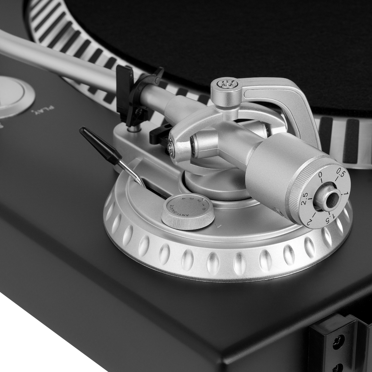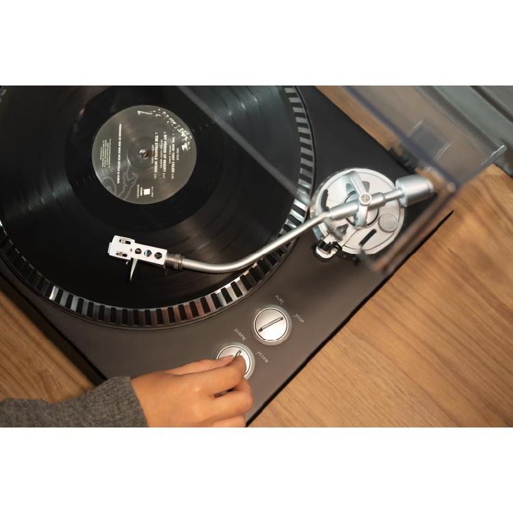 • Platenspeler, metalen behuizing, met twee snelheden (33/45 RPM)