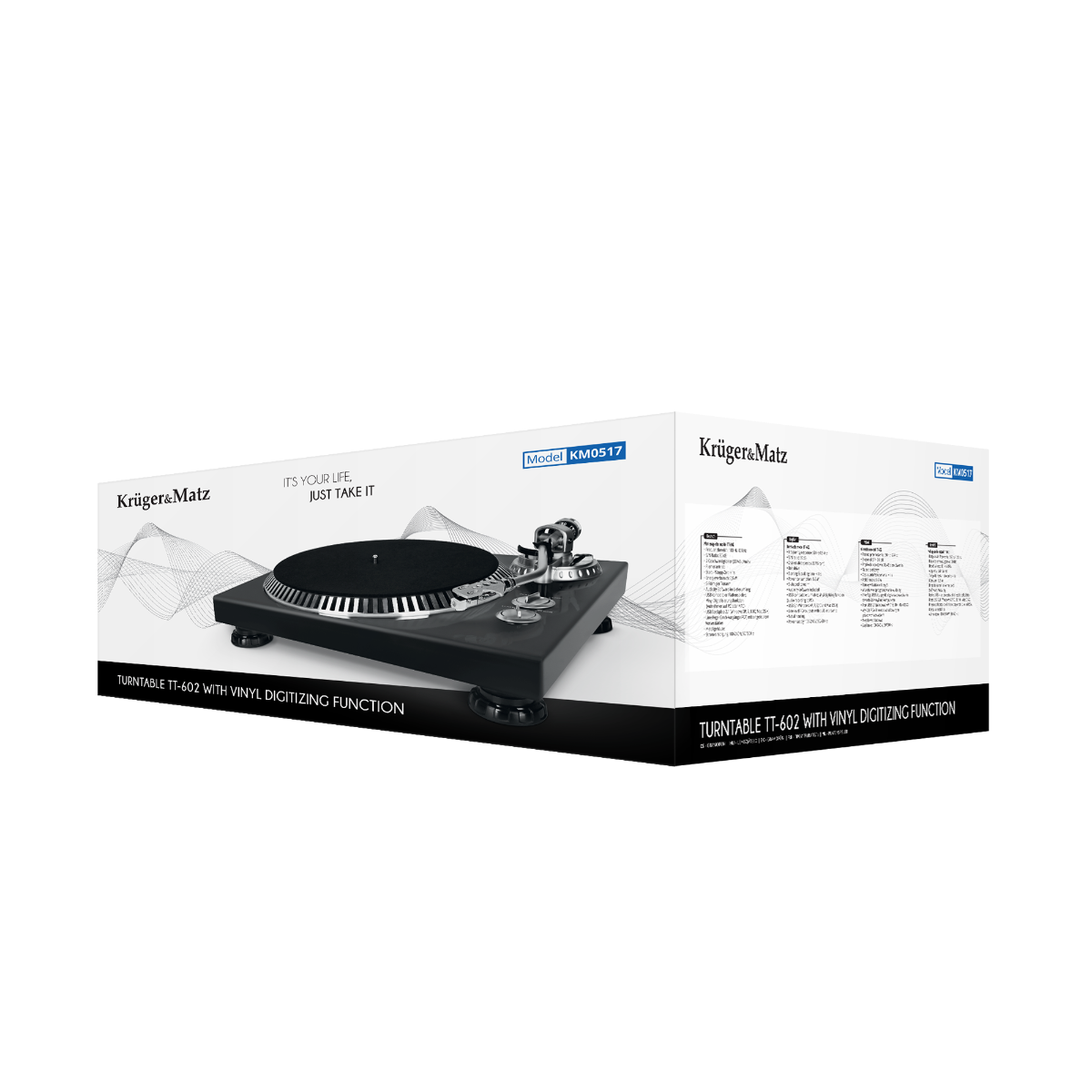 Tijd om de LP's weer van zolder te halen en af te stoffen. Met deze Krüger&Matz KM0517 platenspeler gaat u het vinyl weer herbeleven! Altijd al je oude LP’s willen digitaliseren? Dat kan met deze stijlvolle platenspeler met USB-aansluiting en meegeleverde Audacity software. Het contragewicht zorgt ervoor dat je de juiste druk op de LP houdt. Dankzij de analoge uitgang (RCA) kan je deze platenspeler eenvoudig aansluiten op je versterker en je speakers. De Krüger & Matz KM0517 speelt uw favoriete platen af op 33 of 45 toeren. Met zijn zwarte metalen behuizing en zilverkleurige accenten is dit een perfecte mix van klassiek en modern wat zeker niet zal misstaan in uw huiskamer.