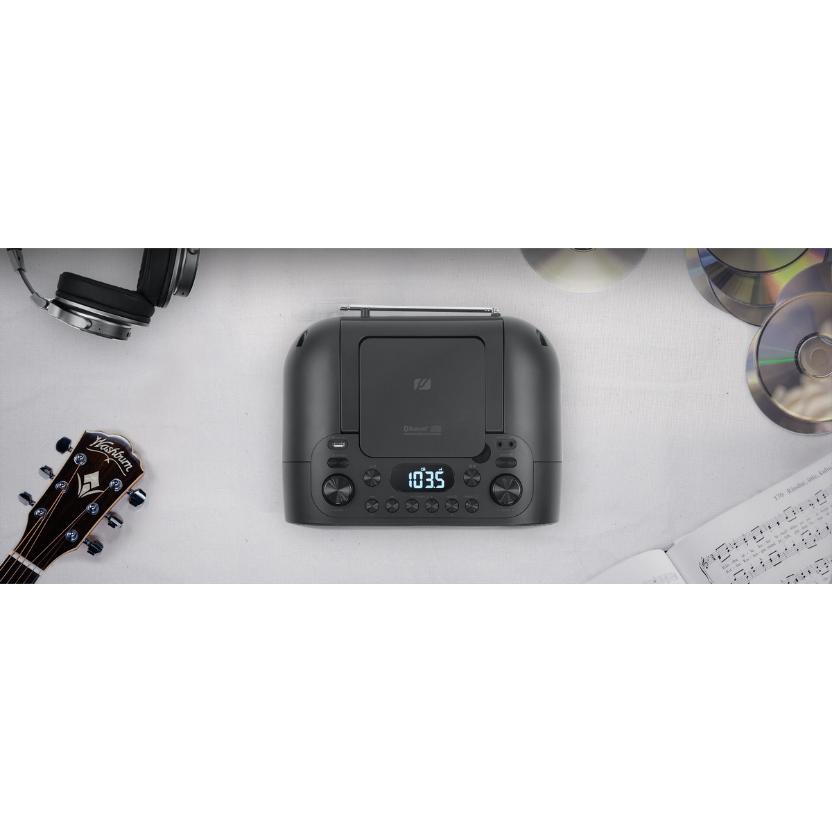 Dit veelzijdige apparaat biedt een breed scala aan functies en connectiviteitsopties die aansluiten bij uw luistervoorkeuren. Geniet van naadloze Bluetooth-connectiviteit voor draadloze muziekstreaming vanaf compatibele apparaten zoals laptops, tablets of smartphones. Speel uw favoriete cd's af met ondersteuning voor cd-, cd-r-, cd-rw- en mp3-formaten. Luister naar lokale radiozenders met de FM PLL-radiofunctie,. Sluit externe audiobronnen aan via de 3,5 mm aux-ingang, perfect voor apparaten zonder Bluetooth-functionaliteit. Bovendien kunt u luisteren met een hoofdtelefoon, wat veelzijdigheid en gemak garandeert voor al uw audiobehoeften. Het compacte formaat en de uitgebreide functies maken het een veelzijdige keuze voor muziekliefhebbers die op zoek zijn naar gemak en hoogwaardige geluidsweergave.