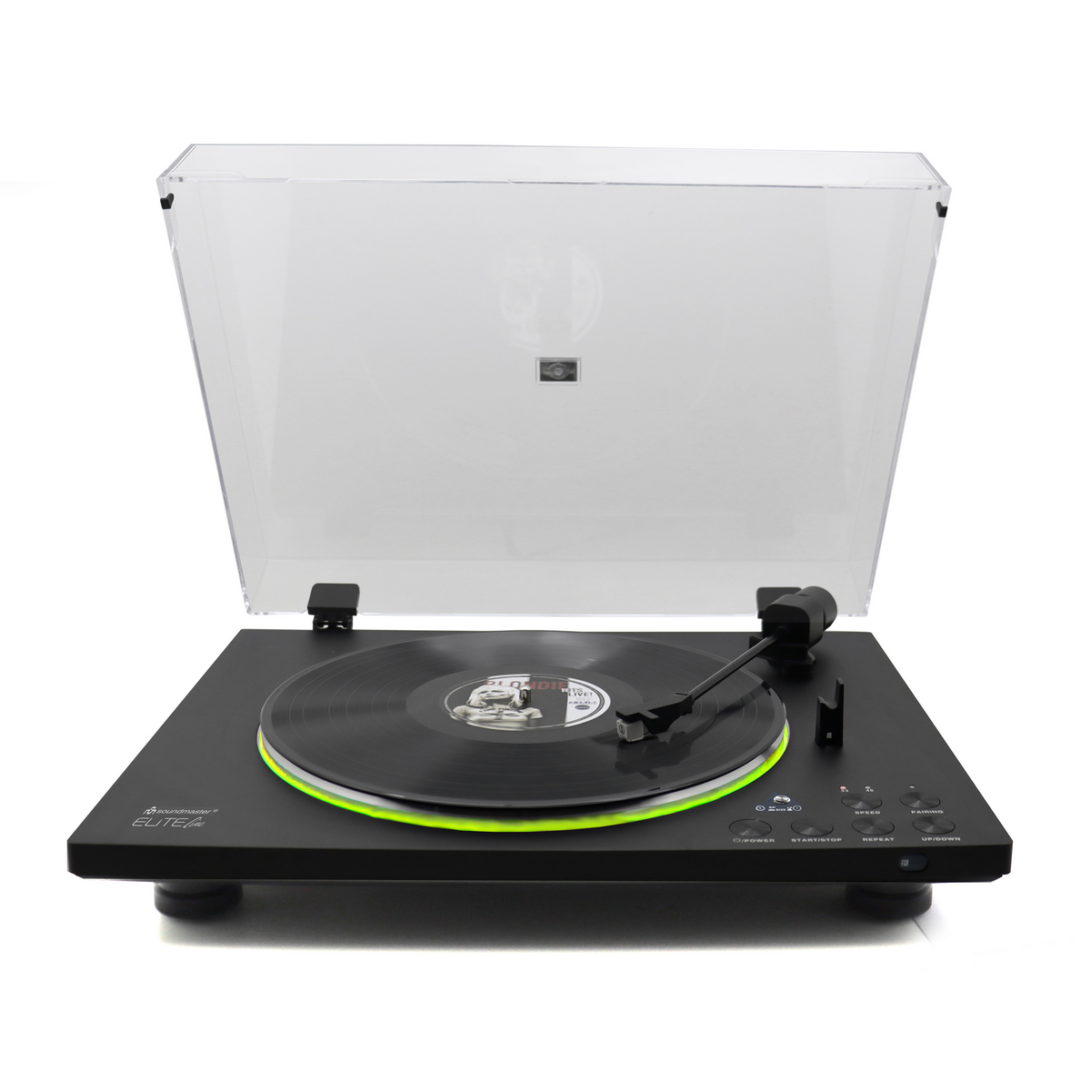 De Soundmaster PL860SW uit de Elite Line van Soundmaster is een volautomatische platenspeler. De platenspeler is uitgerust met een equalizer-voorversterker. Met bluetooth zendt de platenspeler het geluid naar elke bluetoothspeaker of hoofdtelefoon. Het is tevens mogelijk om externe speakers op de Soundmaster PL860SW aan te sluiten. De stabiele behuizing met aluminium plateau beschikt over een magnetisch ophaalsysteem. De platenspeler is te bedienen met de meegeleverde afstandsbediening.