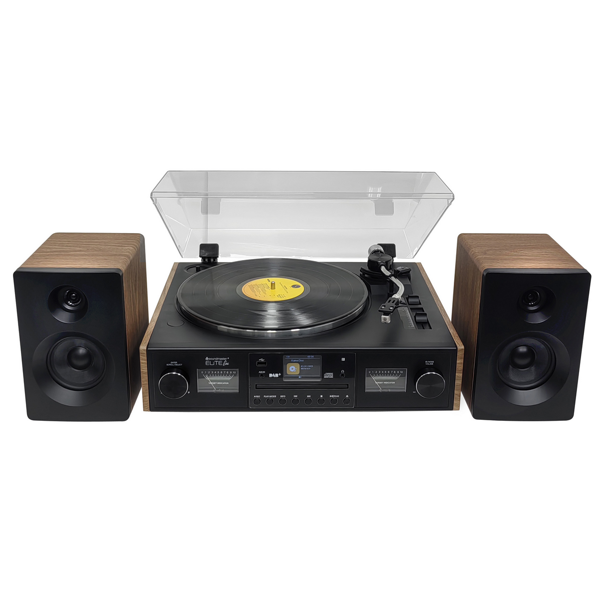 Het muziekcenter PL920 uit de Elite Line range van Soundmaster is een modern muziekcenter in een retro jasje. Hij biedt alles wat een muziekliefhebber zich kan wensen. De PL920 beschikt over een platenspeler met een Audio Technica element voor de perfecte geluidsweergave en een magnetisch ophaalsysteem. Verder is de PL920 uitgerust met DAB+ radio, CD-speler, USB (encoding) en bluetooth. Dankzij de twee meegeleverde luidsprekers beschikt dit apparaat over voldoende volumeweergave.